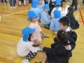 「ひがし音楽会」で発表する曲でお出迎えした後、「小学校へ行こうよ」で仲間作りゲームを楽しみました。そして、折り紙で折った元気さんとあかりさんのプレゼントを渡し、暖かい拍手で年長さんとも絆を強めることができました。後半は、学校探検に出発。多目的室や家庭科室、図書室など、1階から4階までの教室を、年長さんとしっかり手を繋いで探検していました。年長さんは、にこにこと学校の中を探検し、来年度の小学校生活を楽しみにしている様子でした。