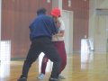 最後は、実際に仲間と試合をしました。貝沼さんから教えていただいたことに気を付けながら、精一杯押し合いました。