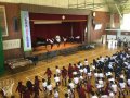 全校合唱に続く全校ダンス。楽曲に合わせて踊っている児童、先生の姿。ダンスの後、体育館いっぱいにアンコールの声が響き、みんなで楽しんでいるダンス姿を2度も見ることができました。
